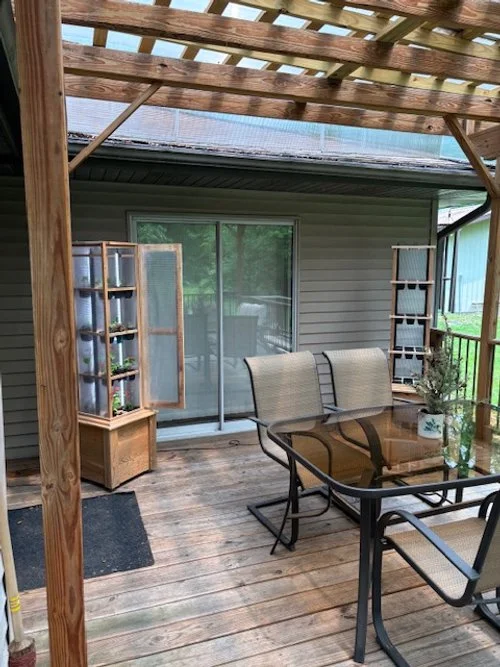 We build planters that are mini green houses. Built with Western Red Cedar wood, plexi glass, and grow lights. Along with other related products.